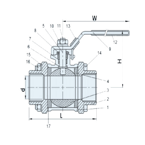 Edelstahl Kugelhahn,3-teilig, RVS 316